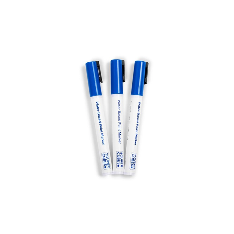 Souper Cubes Water Based Paint Marker – Pack of 3 – Blue Color – Washable, Acid Free Non Toxic Ink. Perfect for Kitchen and Home Use (Blue)(Blue)