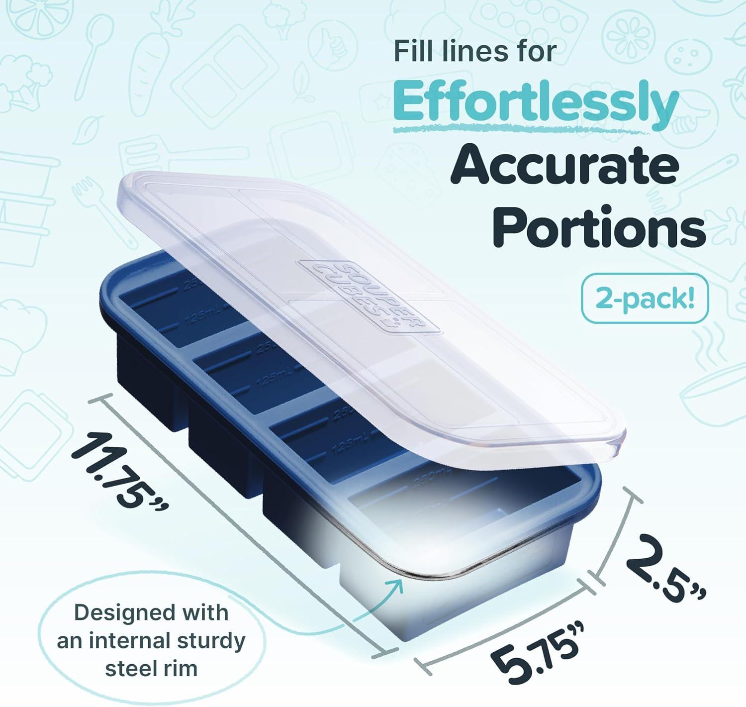 EASY TO PORTION: These soup freezer containers come with convenient fill lines at 1/2 cup, 1 cup, 125 mL, and 250 mL. Each tray measures 11.75″” L x 5.75″” W x 2.5″” H.