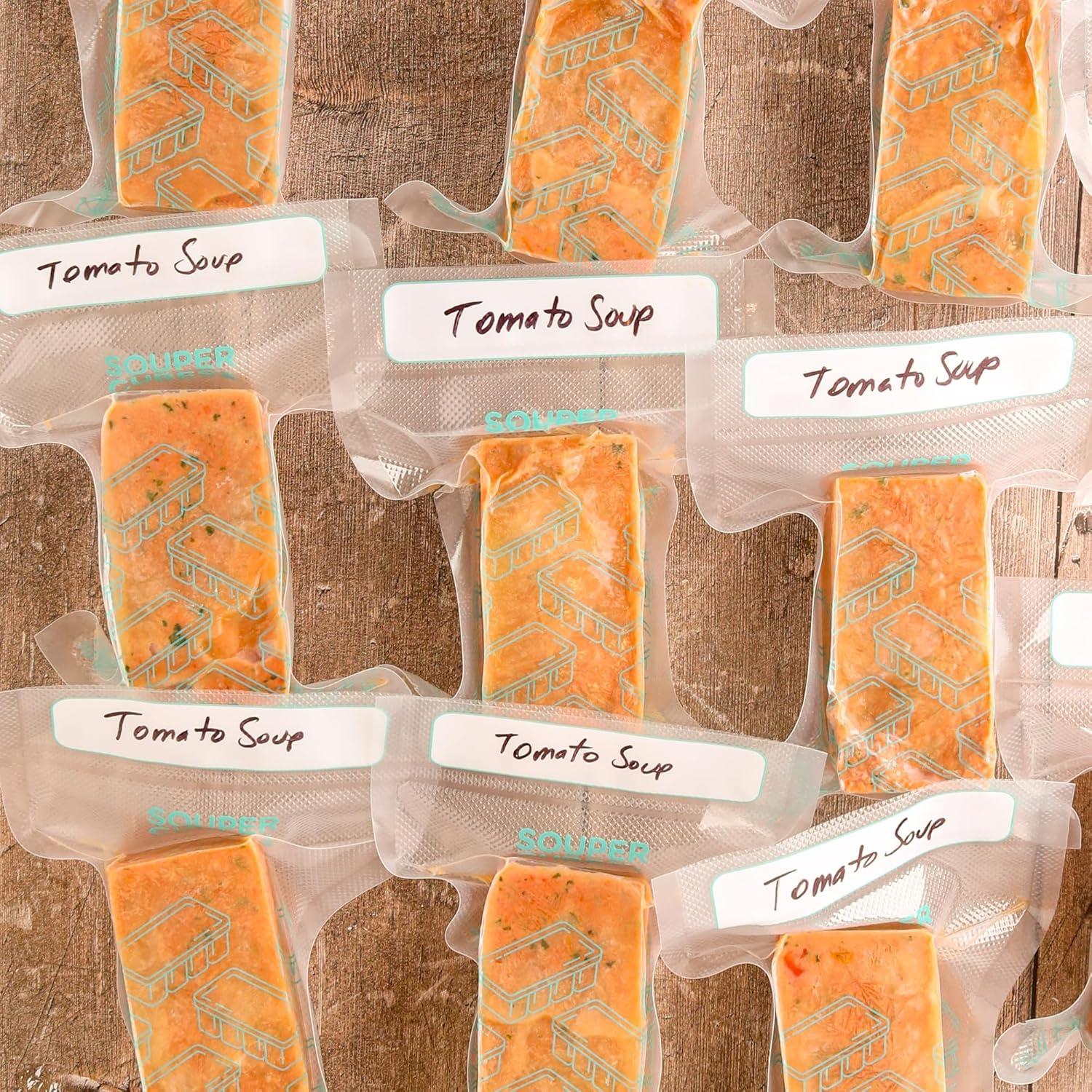 PERFECT FOR SOUPER CUBES 1-CUP FREEZER TRAYS: Souper Cubes vacuum seal bags food are designed for everyday convenience. They are perfect for storing vegetables, soups, sauces, beans, and more that were frozen in Souper Cubse 1-cup silicone freezer trays. Using both the precut vacuum storage bags food and silicone freezer trays make meal prep, freezing, and reheating simple and stress-free.