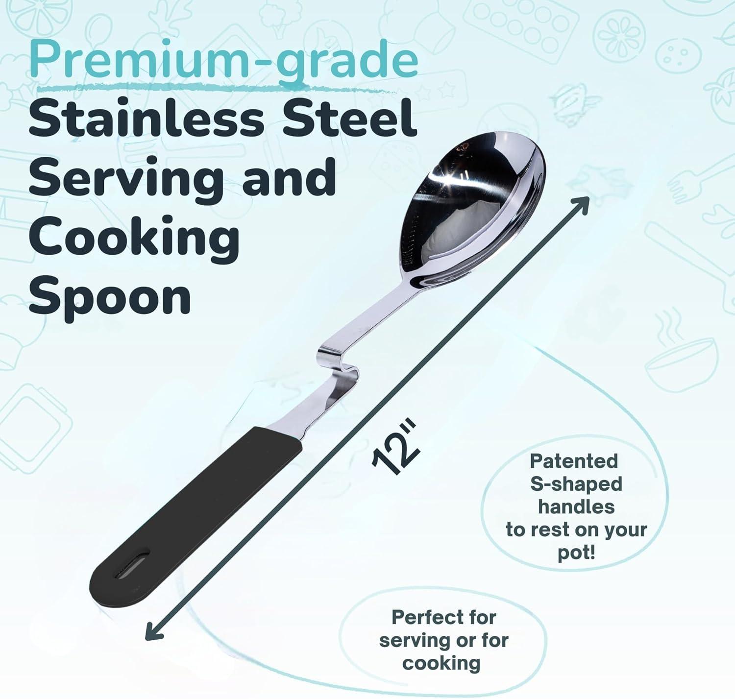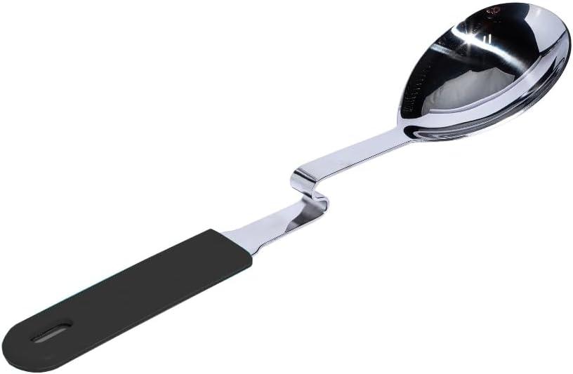 CREATIVE DESIGN: Reduce messes in your kitchen with our stainless steel soup ladle which has a patented curved handle design that easily hangs on the rim of the pot, keeping your space organized and clean. No more soup ladles slipping down into your food, dirty and cluttered spoon rests, or dirty counters.