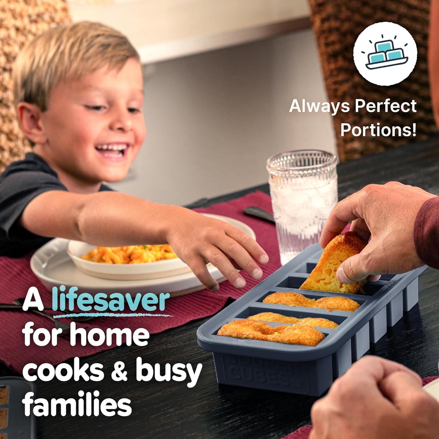 EASY TO PORTION: These silicone freezer containers come with convenient fill lines in both metric and standard units. The 4-piece set comes with 2-cup, 1-cup, 1/2-cup, and 2 Tbsp-sized trays.
